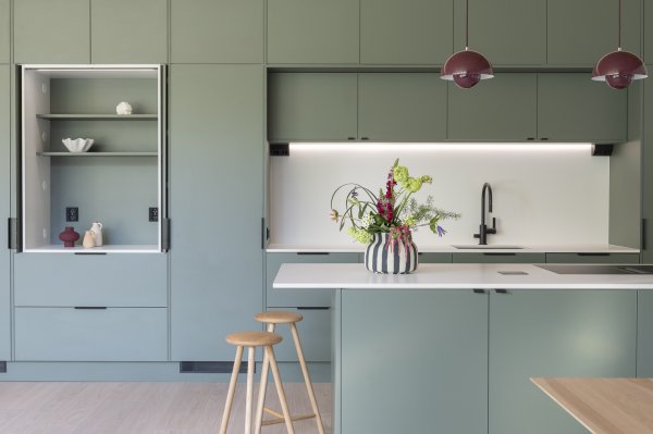 Villa Satakielen keittiöäänestyksen voitto oli meille Idealilla erityisen iloinen uutinen. Kohteen vihreä Lehmus-keittiö oli monen messuvieraan puheenaihe ja rohkean värinsä ansiosta selvästi erottuva helmi messukohteiden joukossa. Keittiö tuo kotiin luontoa henkivää raikkautta ja ajattomuutta. Lehmus-ovi on messujen myötä tullut osaksi tuotevalikoimaamme ja saatavilla myymälöistämme myös omaan kotiin.