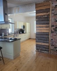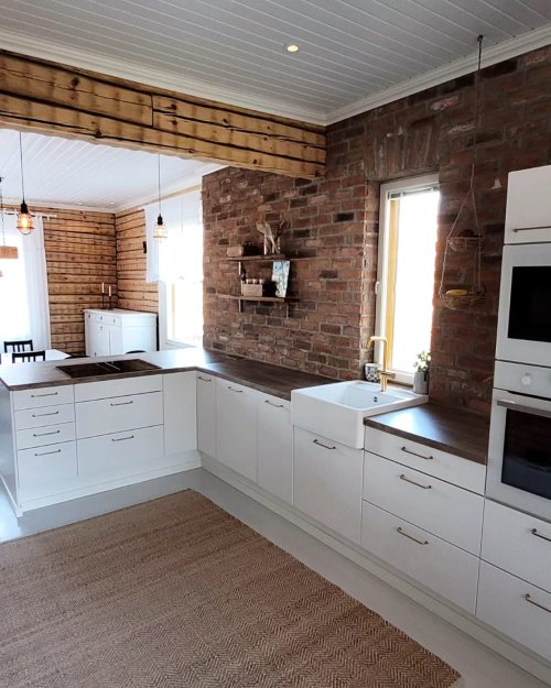 Pariskunnan toiveena oli uudessa keittiössään yhdistellä vanhaa ja uutta sekä tuoda keittiöön rustiikkista tunnelmaa. Keittiöremontin suunnitteluun ja toteutukseen apu löytyi Ideal Keittiöt Mikkelistä ja Virven ammattitaidosta. "Keittiösuunnittelu Virven kanssa oli helppoa ja vaivatonta. Meidän visio yhdistää uutta, vanhaa ja rustiikkista onnistui mielestämme hyvin ammattilaisen opastuksella."