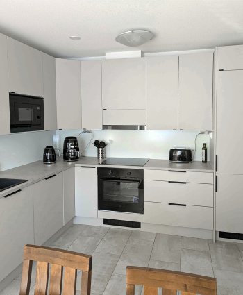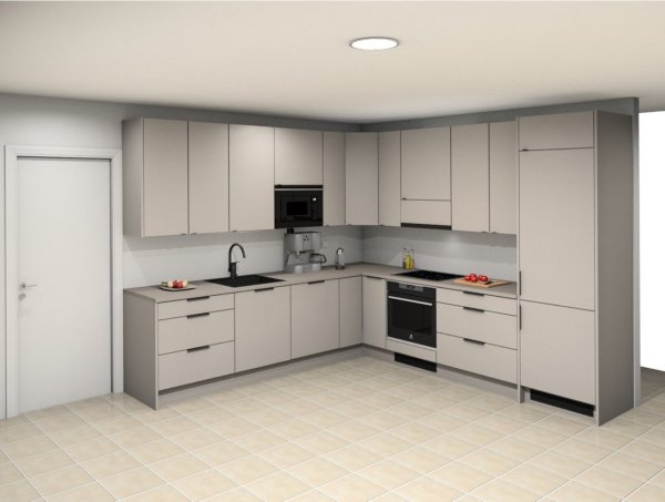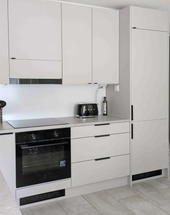 Myös työskentely on sujuvaa ja toiminnallisuudet ovat hyvät. Esimerkiksi integroidut kodinkoneet osoittautuvat hyväksi valinnaksi, ja jääkaappipakastin vastaa arjen tarpeisiin. Kodinkonevalintoihin sai niihinkin avun Idealilta.